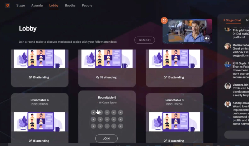 With Goldcast’s Lobby you can create multiple break-out round table sessions for customized engagement that lets you pass the digital mic to your attendees, anytime.