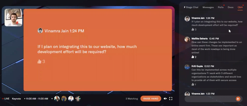 “Polls are usually the next offering but that feels very one-way and anonymous. As an attendee, they select their answer, and someone shares the results with the group—but it's not personal engagement,” she says.