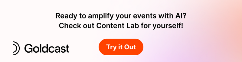 And if writing more blogs is the last thing you want to add to your list, might we suggest the new Goldcast Content Lab? It's the first AI-powered studio that lets you work smarter, not harder, by turning your events into a multi-channel event content strategy—within minutes.