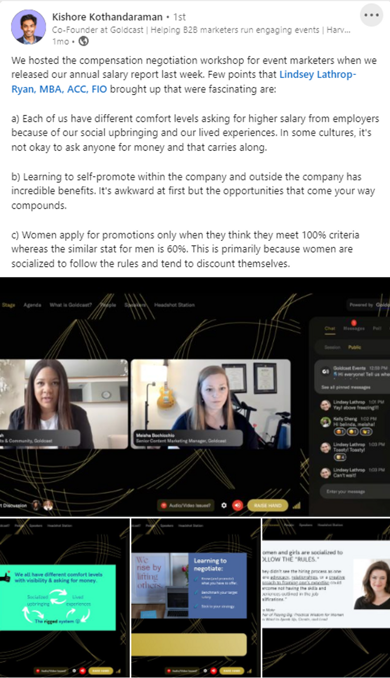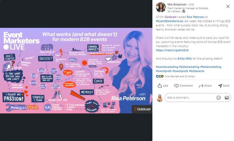 At Goldcast, we love an illustrated ICYMI! By taking an out-of-the-box approach to the age-old infographic, you can offer your audience an eye-catching visual while building awareness (and signups!) for the next event in your series.