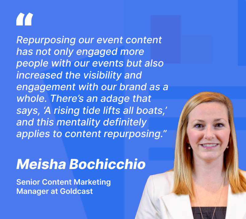 Commit to making content repurposing part of your post-event workflow. Create those hot takes and highlight reels, spark commentary on social media, and use past content to drive future registrations.