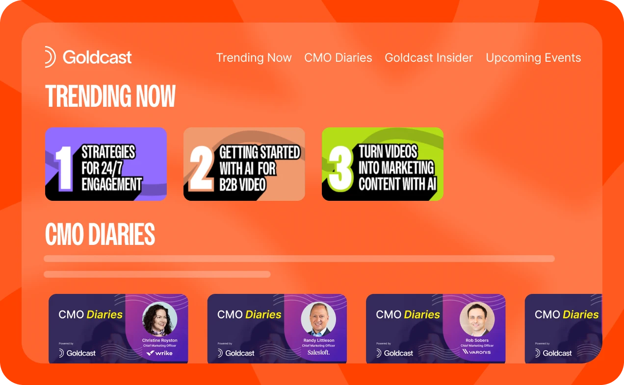 Learn how hundreds of B2B companies use Goldcast’s Video Content Platform to engage and convert their audience.