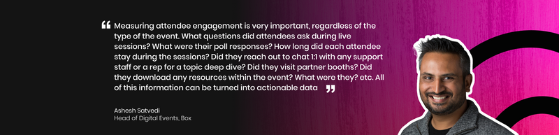 You can also take data gathering one step further to make even your qualitative data actionable. For example, if you measure what questions attendees ask, you can tally up how many people asked what type of questions to create a custom engagement score and arm your sales team with a hyper-personalized follow up strategy.