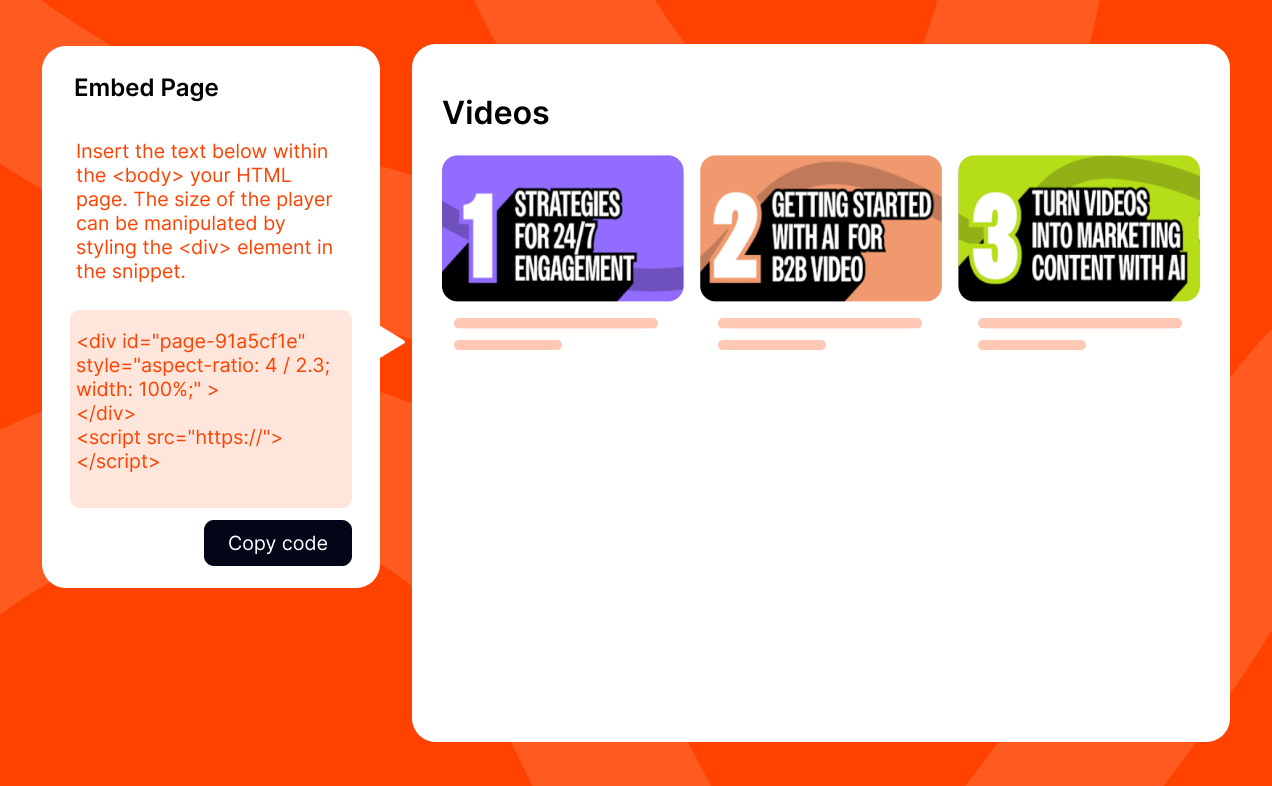 Choose to host your hubs with Goldcast, with whitelabeled domains, or simply embed them directly on your website—whether it’s just one video collection or the whole page itself.
