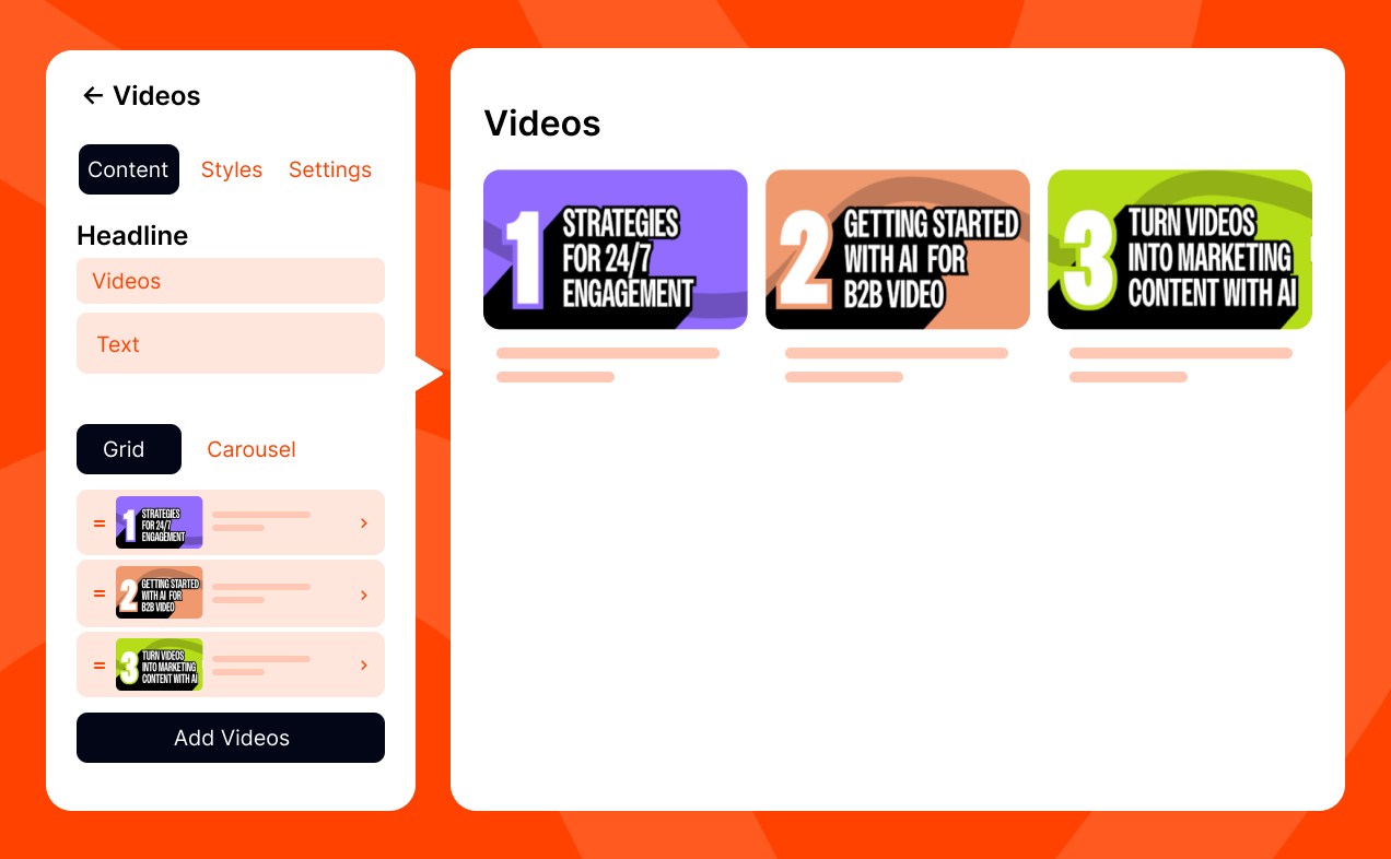 Easily create custom, branded, and GEO ready video hubs with our drag-and-drop builder, using a variety of content blocks to create the perfect content experience.