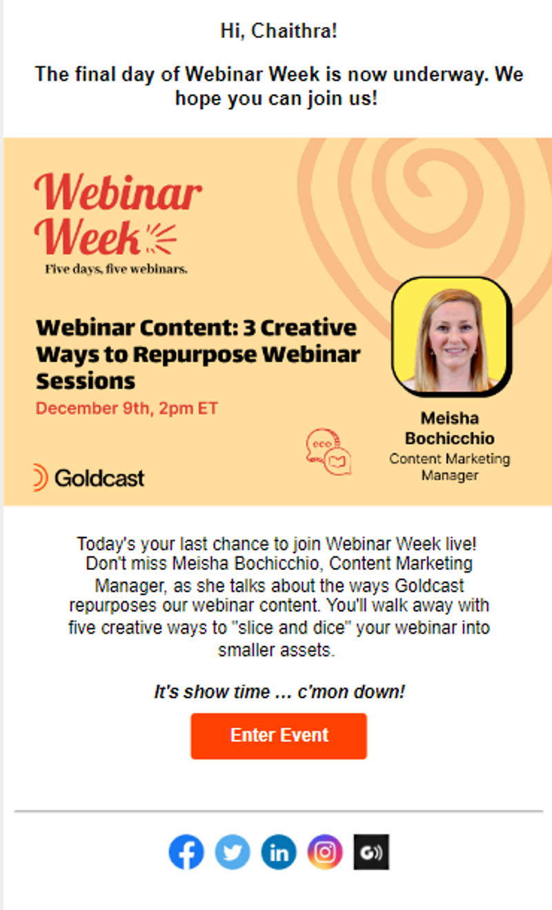 Now, if you are addressing a not-so-national topic with a not-so-marquee speaker, you can still get your audience hyped up about the event. You need to build the webinar narrative around how the topic can help attendees solve their challenges.