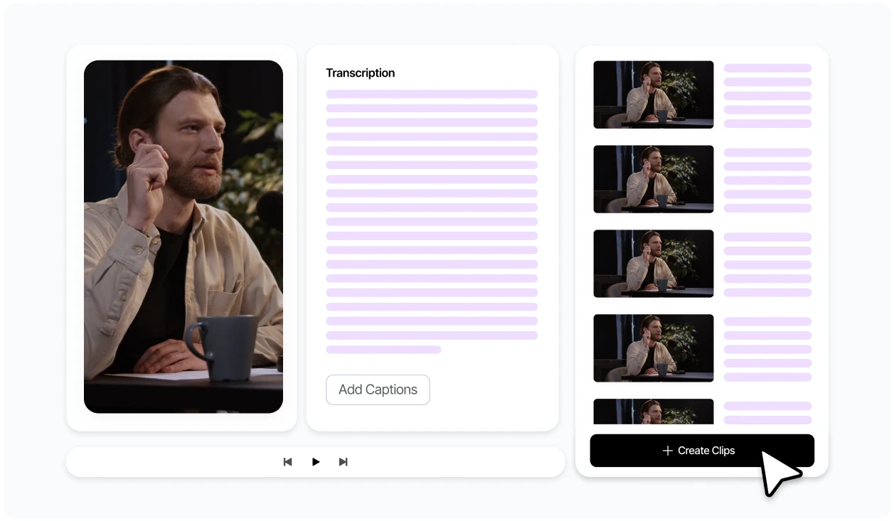 Turn your video library into a powerful resource. Search, edit, and create clips for social media, blogs, and more—powered by AI.