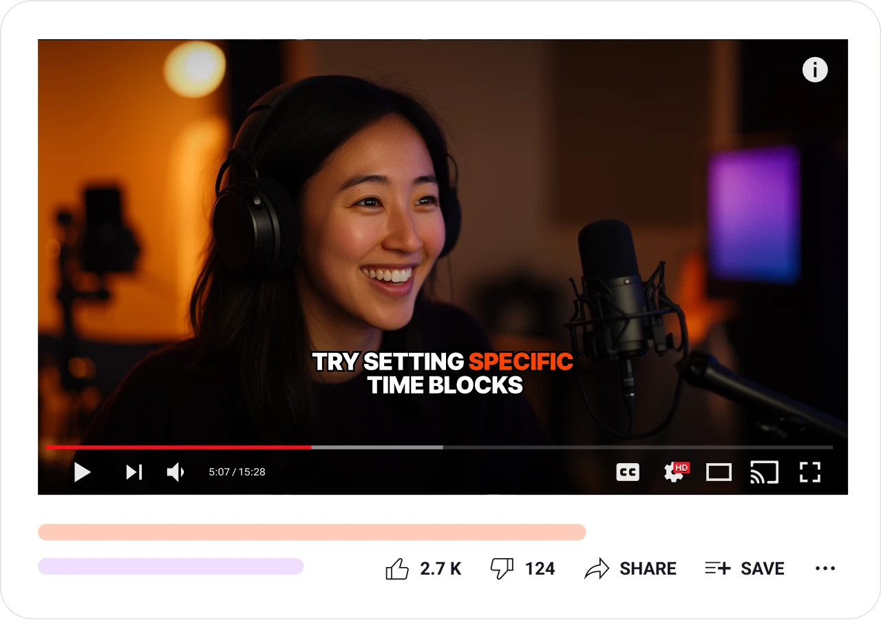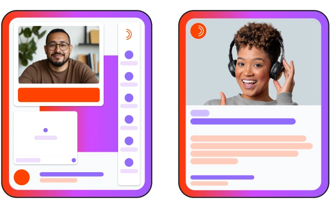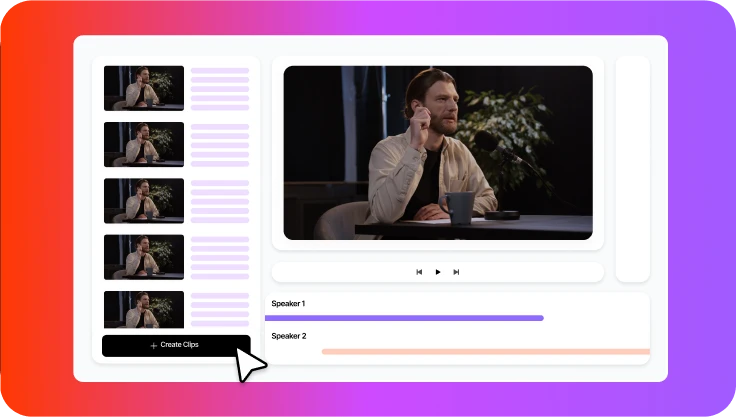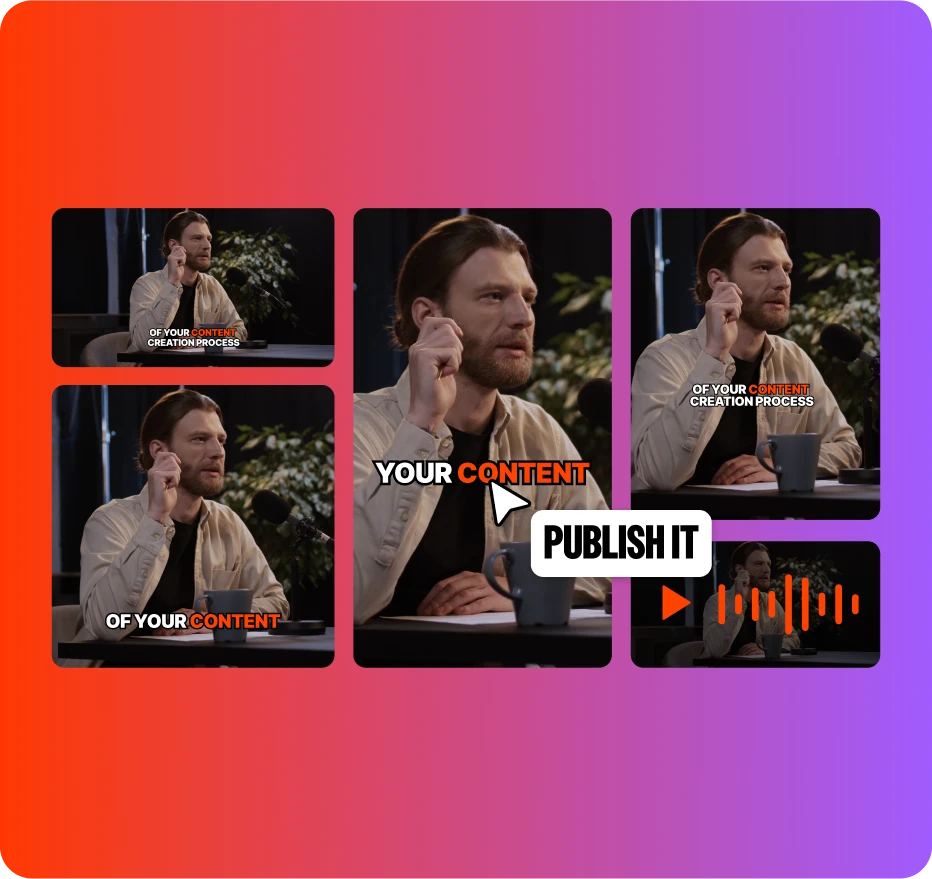 Create a webinar, clip it into social posts, turn it into a podcast, and host it on your site—all in one place. AI takes care of the heavy lifting, so you can go from one big idea to a dozen ready-to-go assets in seconds.